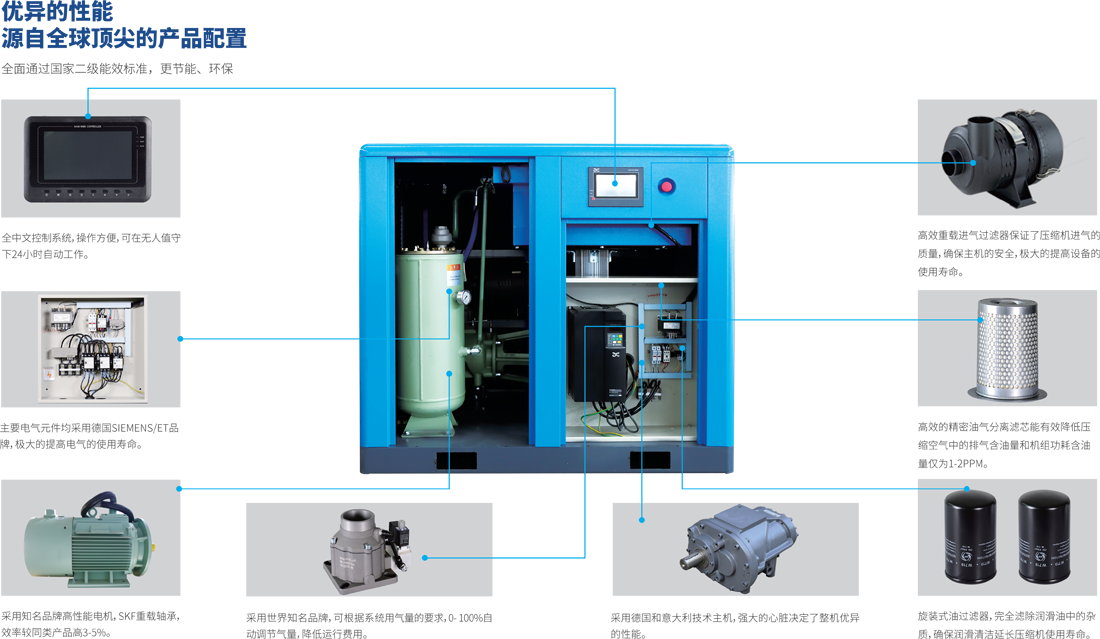 2、结构紧凑、传动效率高,能有效提高空压机的效率,节省能源;